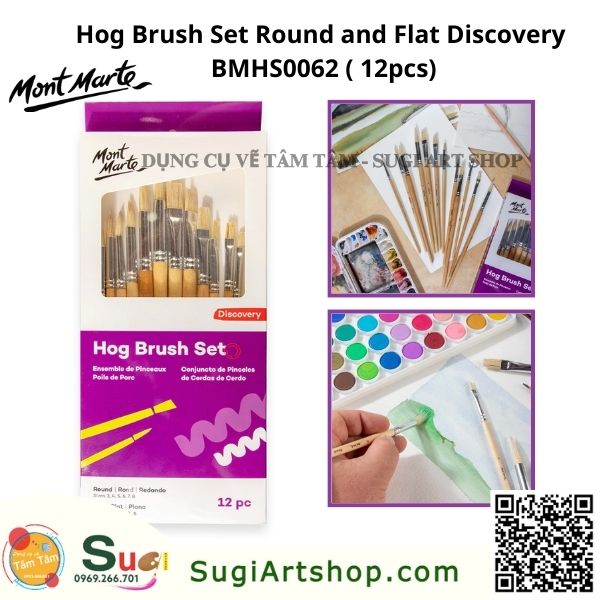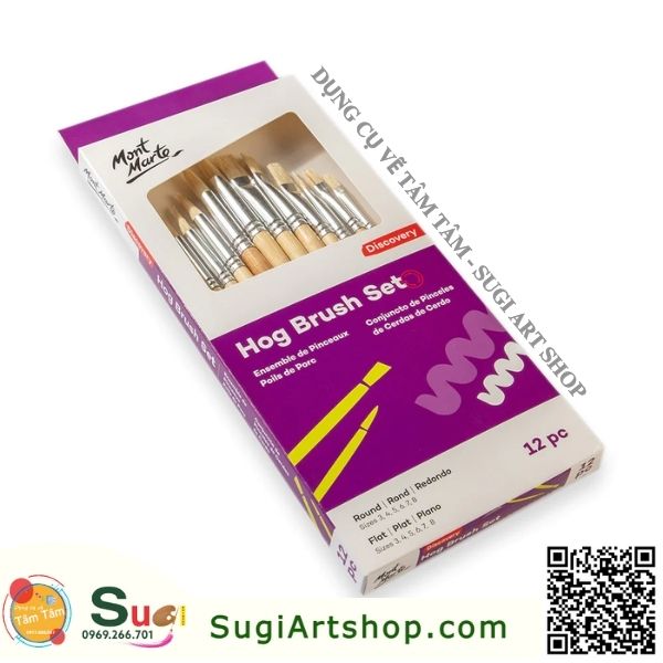 | Tên sản phẩm | Bộ 12 Cọ Vẽ Màu Acrylic, Màu Nước , Sơn Dầu – Hog Brush Set Round and Flat – Mont Marte (BMHS0062) |