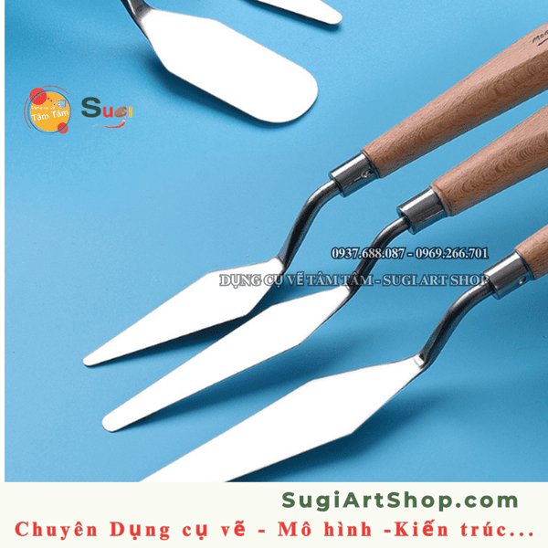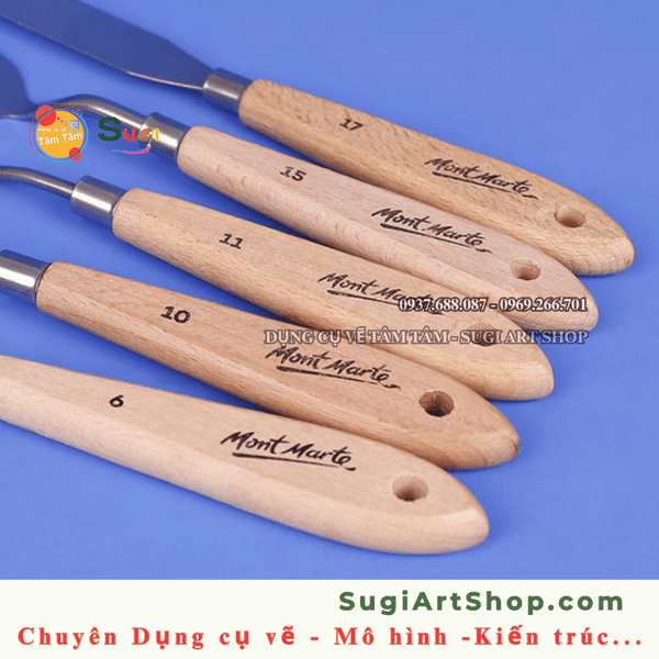 Bộ Bay trộn màu Mont Marte phù hợp cho màu dầu, acrylic và poster, gouacher., Chất liệu: Thân cầm bằng gỗ, đầu bay làm thép