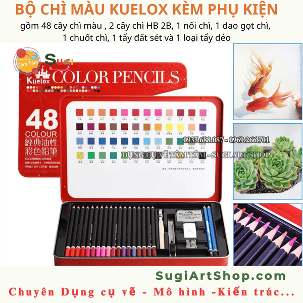 Bộ chì màu Kuelox 48 màu , Bộ chì màu kèm phụ kiện