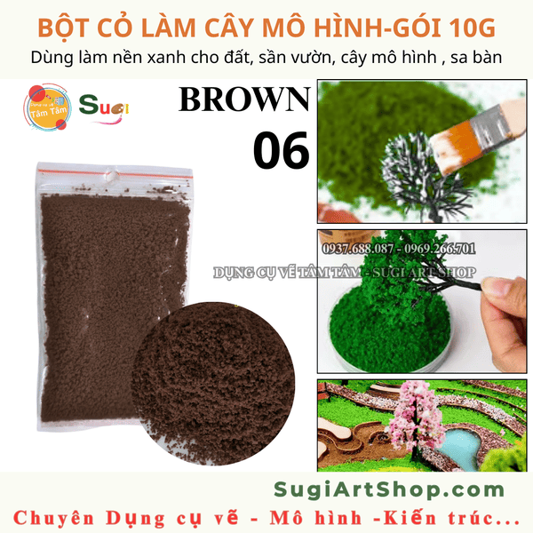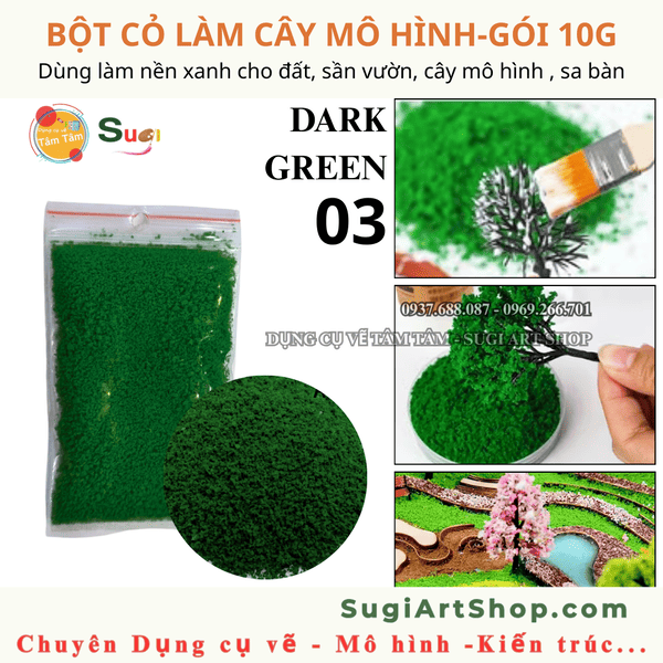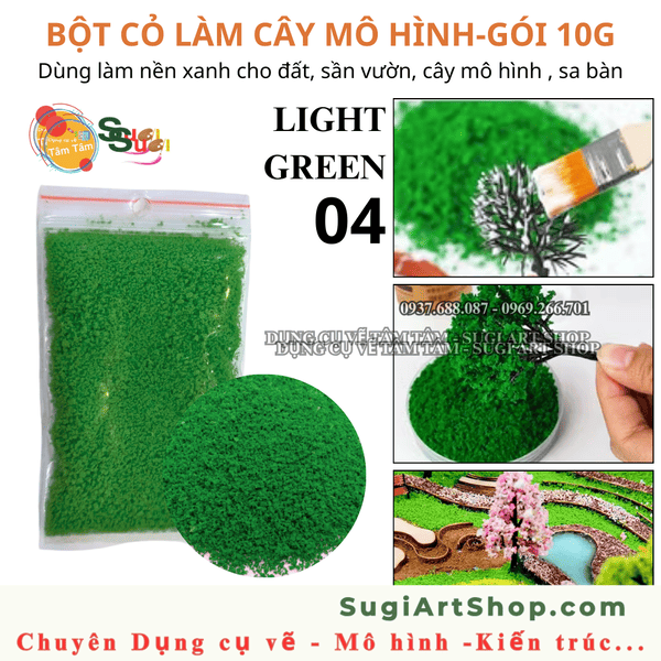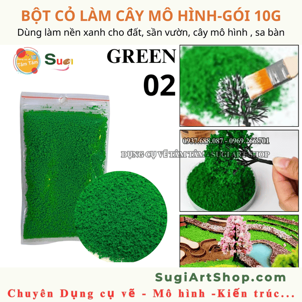 | Phân Loại | 01-Yellow Green-10g, 02-Green-10g, 03-Dark Green-10g, 04-Light Green-10g, 06-Brown-10g, 08-Rose-10g, 10-White-10g, 11-Purple-10g, 12-Yellow-10g, 13-Blue-10g, 15-Orange-10g, 18-Pink-10g, 19-Red-10g, 20-Pink Purple-10g, Bột Tiểu Cảnh 02-10g, Cỏ Sợi Nâu 04-10g, Cỏ Sợi Xanh 01-10g |