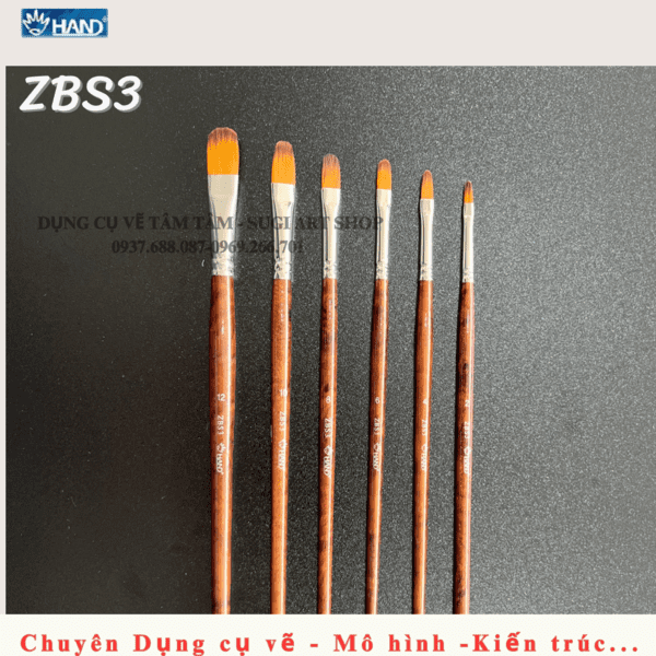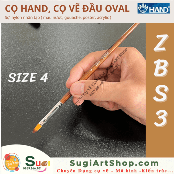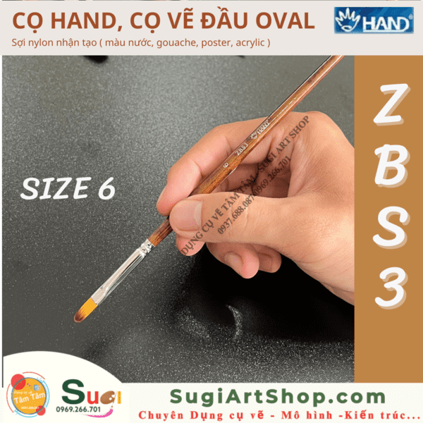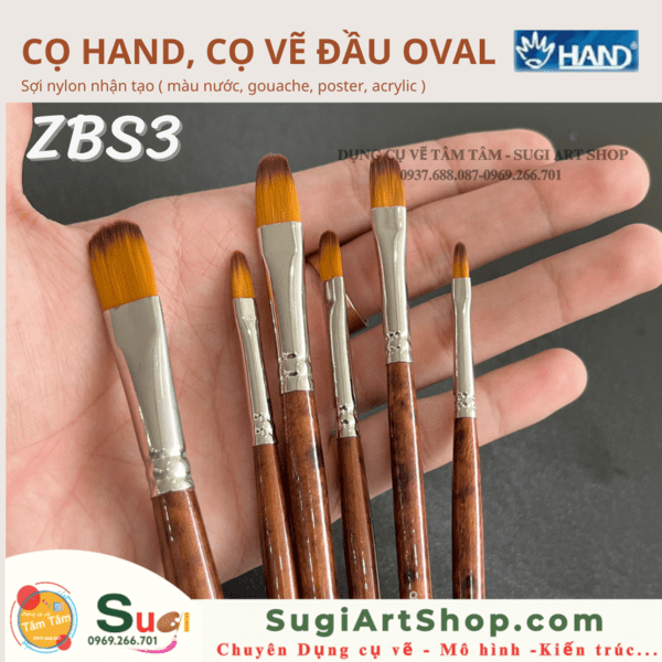 | Tên sản phẩm | Cọ vẽ màu nước, cọ hand đầu oval thân nâu mã ZBS3 |