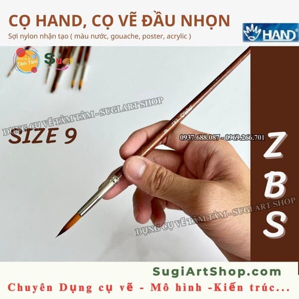 | Tên sản phẩm | Cọ Hand ZBS đầu nhọn thân nâu , cọ đi nét nhọn |
