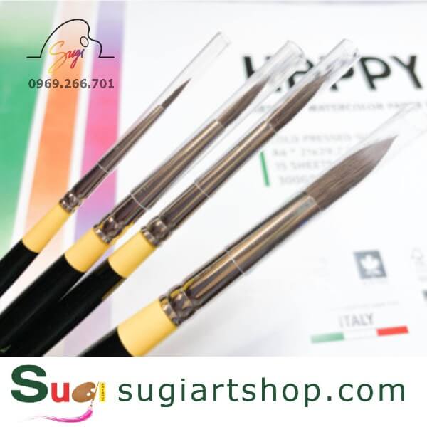 - Cọ vẽ màu nước đầu tròn Happy Pro Thân ĐEN VÀNG Cọ Vẽ Màu Nước Happy Pro là sự kết hợp giữa lông nhân tạo và lông tự nhiên cực kỳ mềm mại.