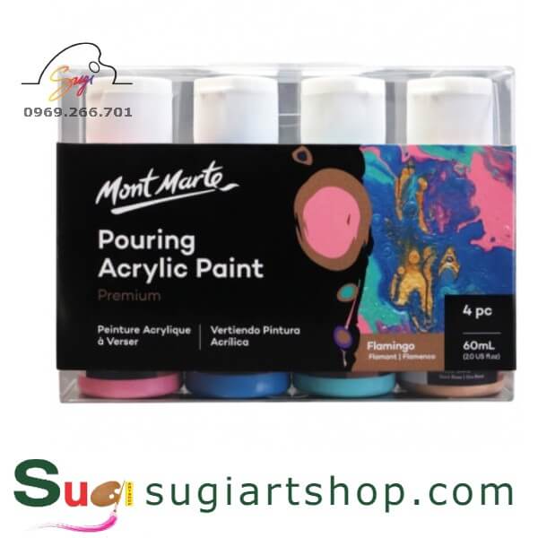 | Tên sản phẩm | Bộ màu đổ Mont Marte Premium Pouring Acrylic Paint set 4 chai 60ml-Flamingo-PMPP4204 |