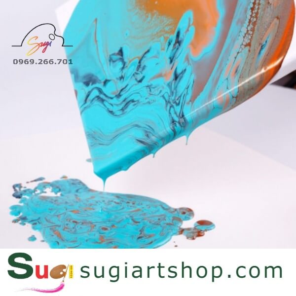 - Acrylic Pouring – kĩ thuật đổ màu Acrylic chảy dọc theo canvas loang vào nhau tạo nên các tác phẩm bắt mắt