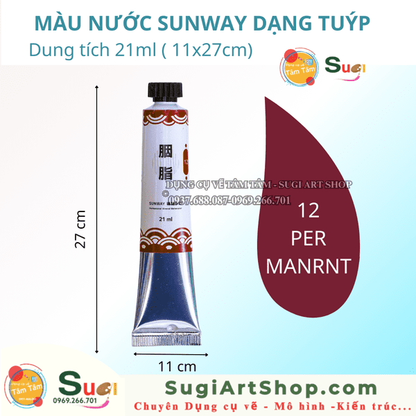 | Tên sản phẩm | Màu Nước Sunway Dạng Tuýp lẻ , dung tích 21ml , Màu được Làm Từ Bột Khoáng Sản Tự Nhiên |