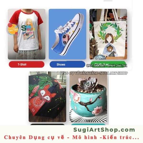 | Ứng dụng | – Thích hợp cho hầu hết các bề mặt bao gồm canvas, gỗ, đất sét,
