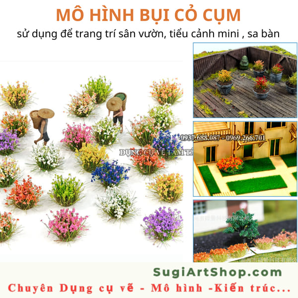 | Mô tả | Mô hình bụi cỏ, bụi hoa mini dùng trang trí sa bàn kiến trúc, nhà búp bê, terrarium, diorama. Thiết kế chân thực, dễ sử dụng, giúp mô hình sinh động và chuyên nghiệp hơn.