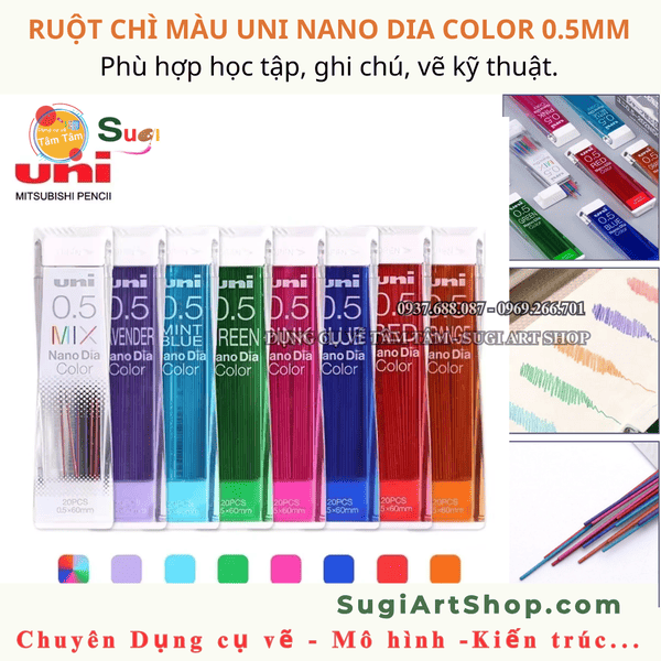 Ruột Chì Màu UNI NANO DIA COLOR 0.5mm – Chì Màu Bấm Cao Cấp Chính Hãng Nhật Bản
