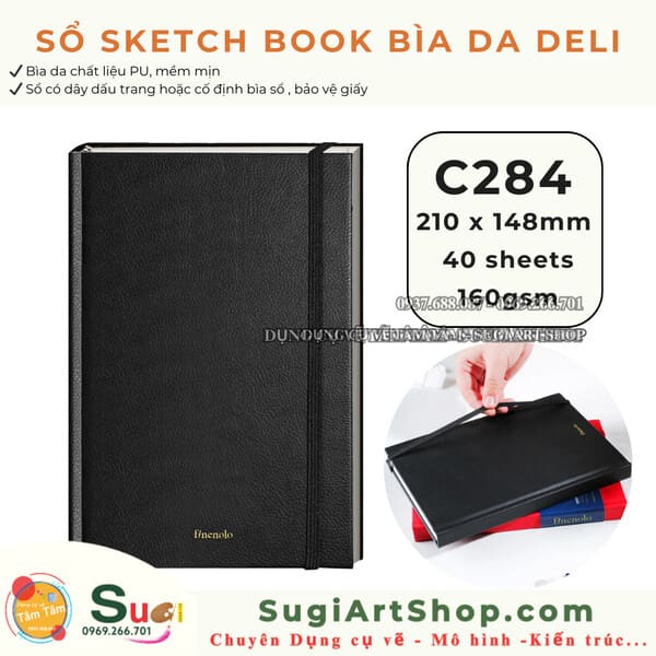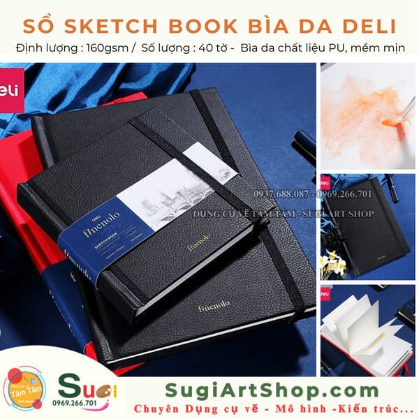 Sổ Sketch Book Bìa Da Deli , 40 trang, 160gsm