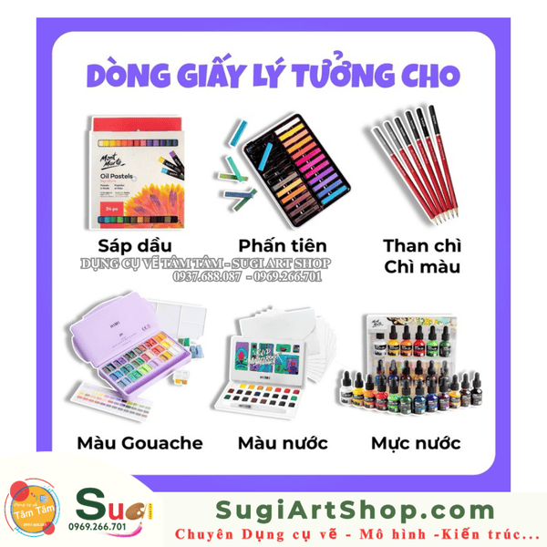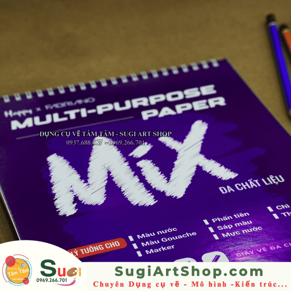 | Ứng dụng | Sổ vẽ đa chất liệu màu nước, gouache, chì màu, marker, phấn tiên, sáp màu, mực nước,.. |