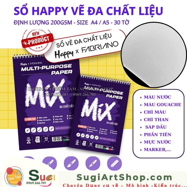 Sổ vẽ màu nước Happy 200gsm , vẽ đa chất liệu