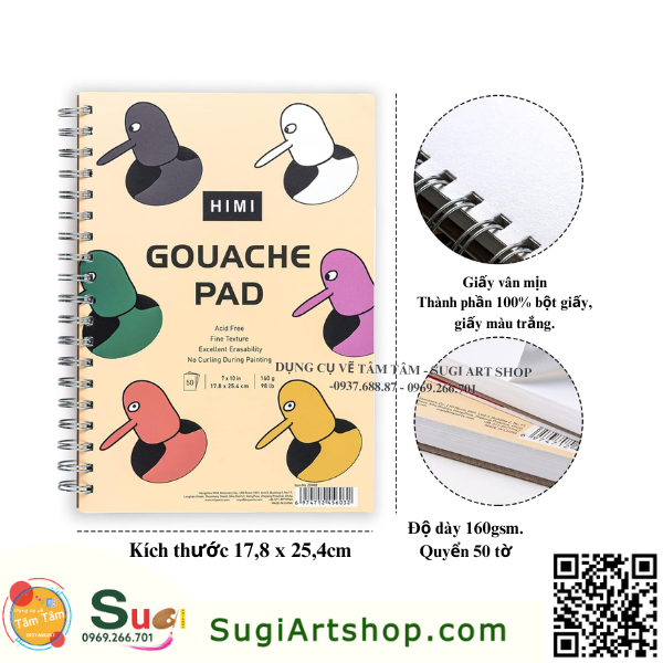 | Tên sản phẩm | Sổ vẽ Himi Gouache Pad 160gsm (50 tờ) |