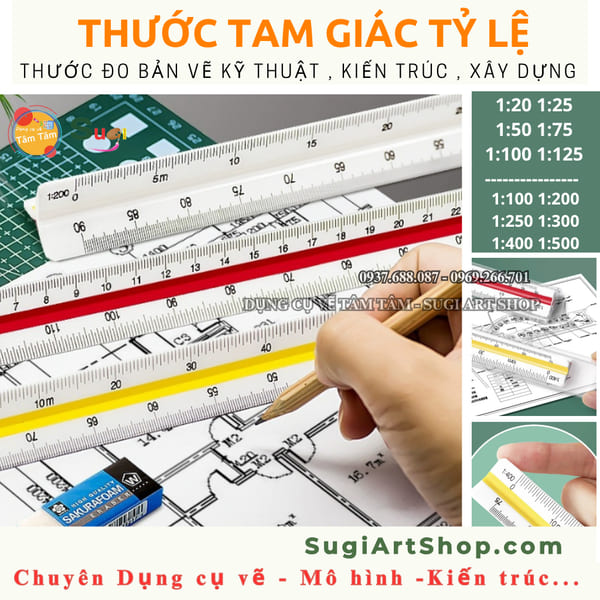 Thước Tam Giác tỷ lệ, thước 3 cạnh Thước Đo Bản Vẽ Kỹ Thuật